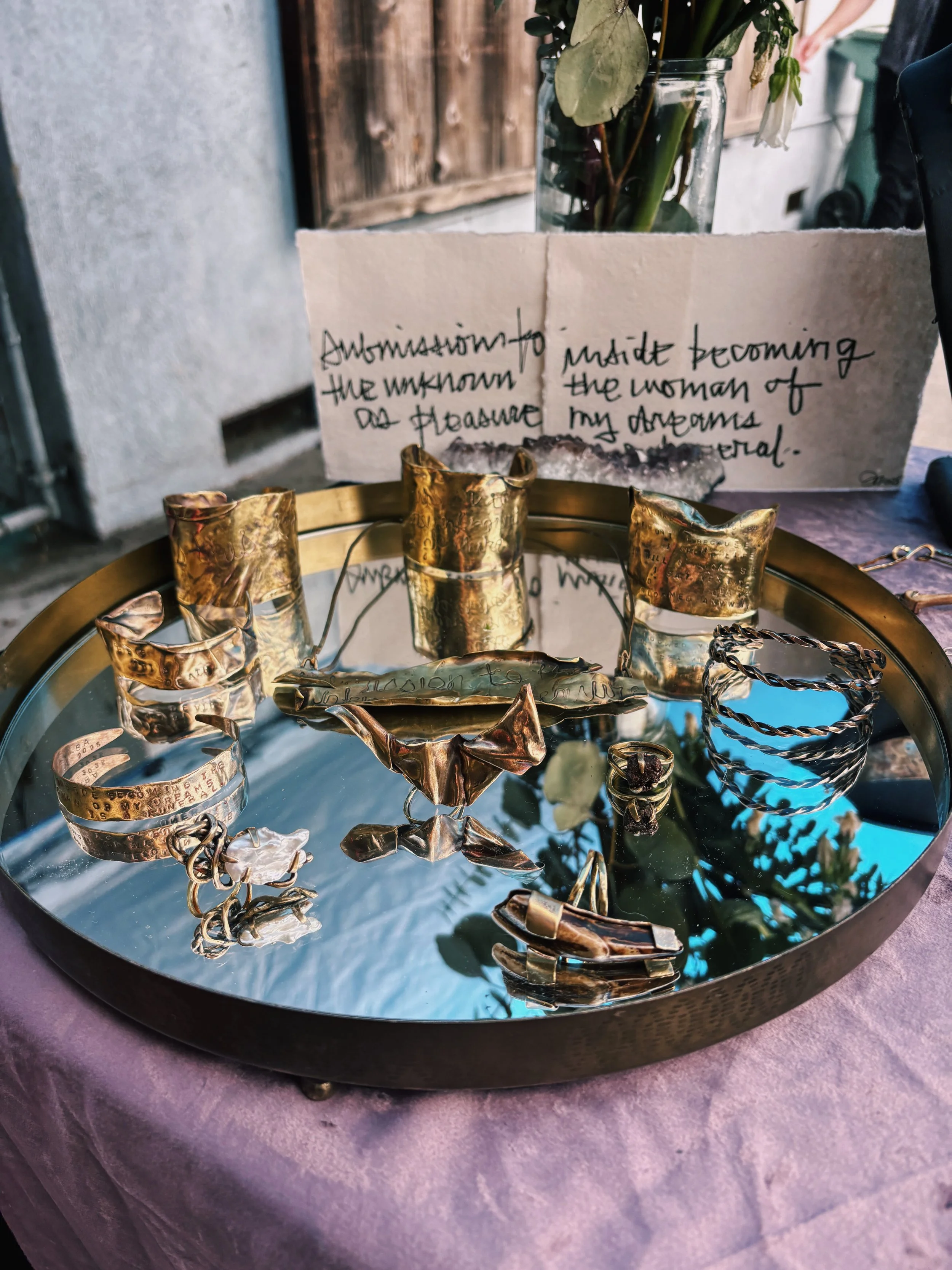 In my inaugural metal collection, Magus of the Dirt, the spark of the upcoming 2026 Magician year is honored in its connection to the infinite, in the everything that came before and brought us to this moment. Metal, bone, tooth and fossil—relics of our history as we set ourselves free into a new reality. We've cut, shaped, forged and polished. Now we sit in power, charged and ready, in gratitude and gratitude and gratitude, our bodies as an altar, covered in offering, dripping with the medicine of yesterday, grounding in a tomorrow we never knew we were always promised.